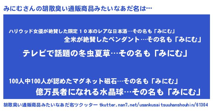 意味不明あだ名 | 『自称みにむ』『住所不定無職みにむ(7歳)』 |