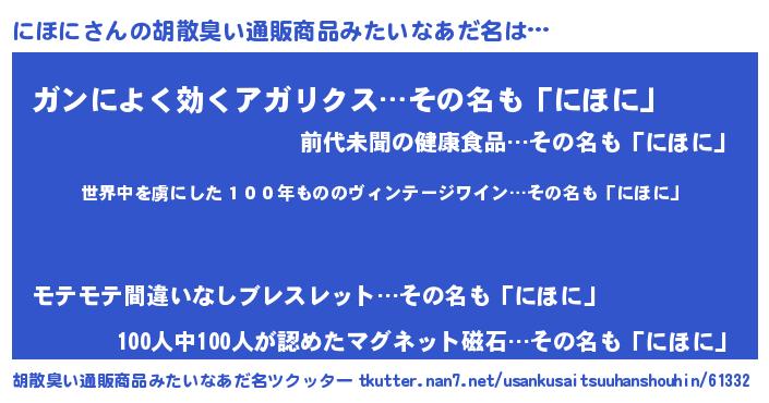 | ポケモン風あだ名 | 『ニーホイ』『ニホセウス』 |