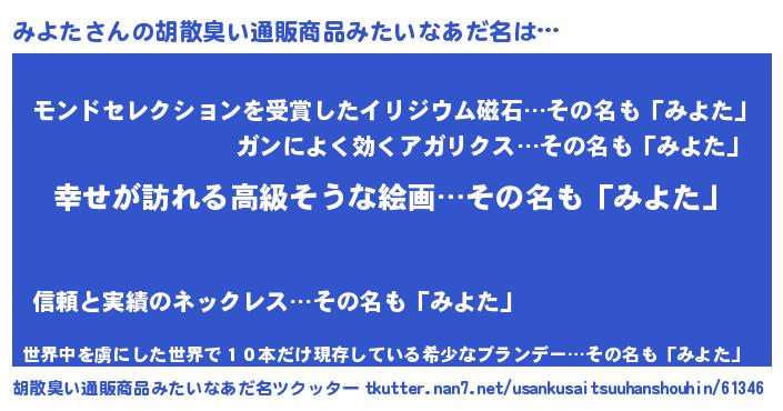 | 意味不明あだ名 | 『みよたフォーエバー』『自称みよた』 |