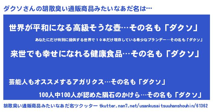 | ヒーロー風カッコイイあだ名 | 『ネオダクソ』『ウルトラダクソマン』 |