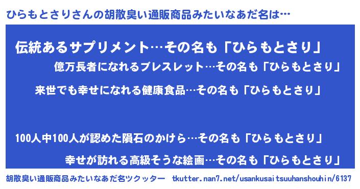 | ヘコむあだ名 | 『ひらもとさり(爆)』『ひらお』 |