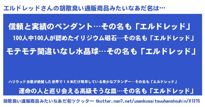 | 男性向けラノベタイトル風あだ名 | 『エルドレッドアートオンライン』 |