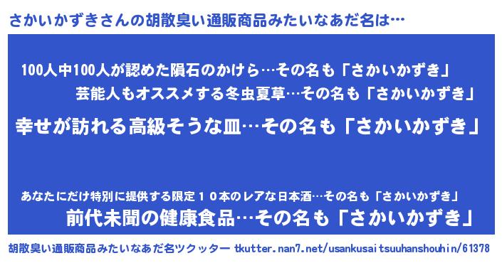| ヘコむあだ名 | 『つくし』『さかいかずき(苦笑)』 |