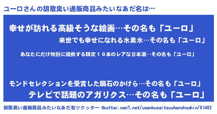 | 意味不明あだ名 | 『住所不定無職ユーロ(68歳)』『自称ユーロ』 |