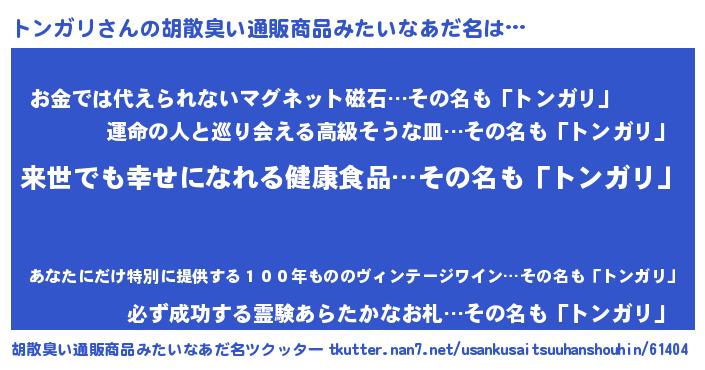 | ヒーロー風カッコイイあだ名 | 『ネオトンガリ』『愛の使者トンガリ』 |
