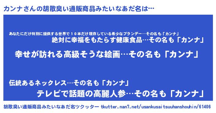 | 意味不明あだ名 | 『カンナフォーエバー』『自称カンナ』 |