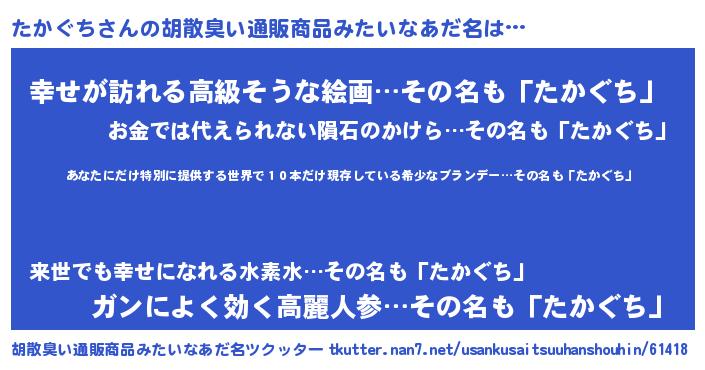 | 意味不明あだ名 | 『住所不定無職たかぐち(79歳)』 |