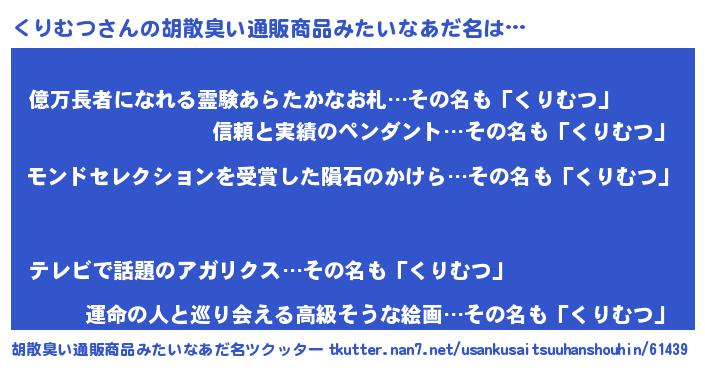 | 意味不明あだ名 | 『眠気覚ましガムくりむつ味』 |