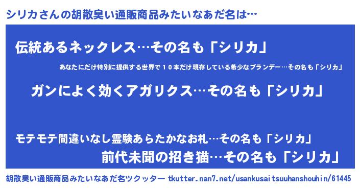 | 意味不明あだ名 | 『自称シリカ』『とにかく怪しいシリカ』 |