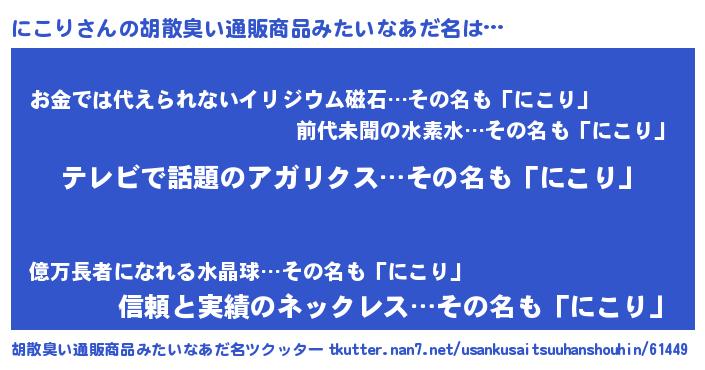 | ヘコむあだ名 | 『にこっ子』『にこり(笑)』 |