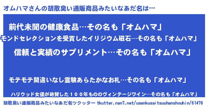 | 男性向けラノベタイトル風あだ名 | 『ダンジョンにオムハマを求めるのは間違っているだろうか』 |