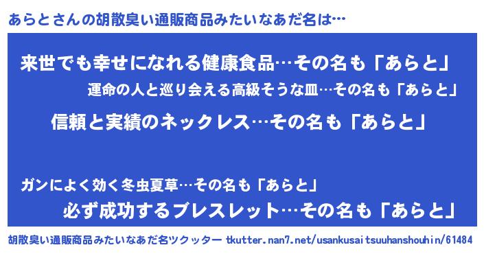 | ヘコむあだ名 | 『あらっ子』『あらと(爆)』『つくし』 |