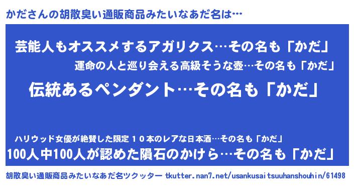 | 意味不明あだ名 | 『とにかく怪しいかだ』『自称かだ』 |