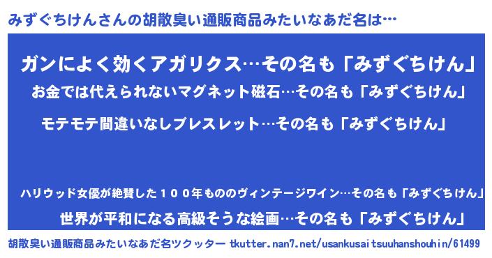 | ヒーロー風カッコイイあだ名 | 『スーパーミズグチケン』『仮面ミズダー』 |