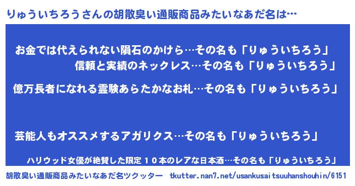 | 男性向けラノベタイトル風あだ名 | 『リュウイチロウアートオンライン』 |