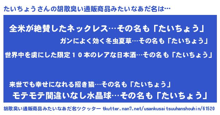 | 意味不明あだ名 | 『住所不定無職たいちょう(40歳)』 |