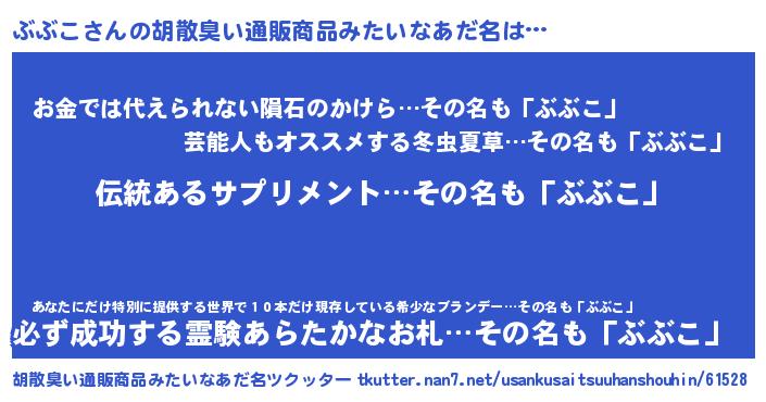 | 意味不明あだ名 | 『とにかく怪しいぶぶこ』『自称ぶぶこ』 |