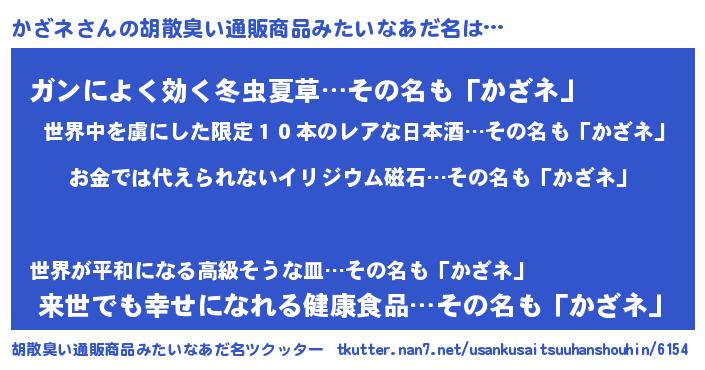 | 意味不明あだ名 | 『眠気覚ましガムかざネ味』『自称かざネ』 |