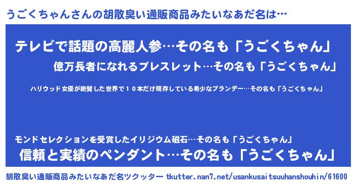 | 意味不明あだ名 | 『住所不定無職うごくちゃん(93歳)』 |
