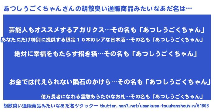 | ヘコむあだ名 | 『あつしうごくちゃん(笑)』『あつにゅー』 |