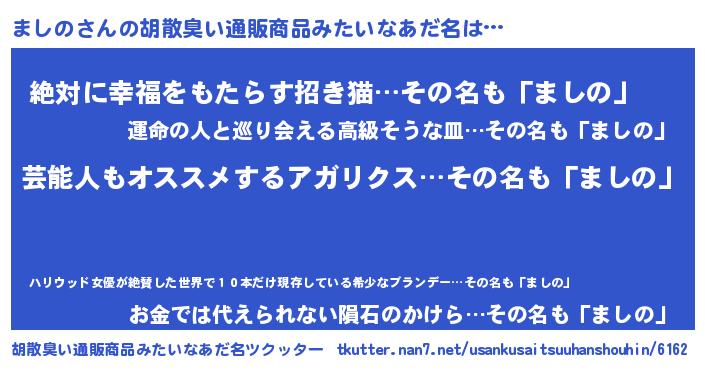 | 男性向けラノベタイトル風あだ名 | 『Re:ましのから始める異世界生活』 |