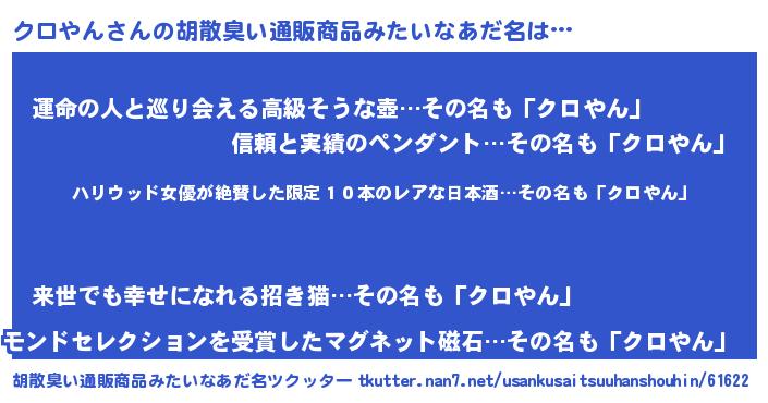 | 意味不明あだ名 | 『住所不定無職クロやん(53歳)』 |
