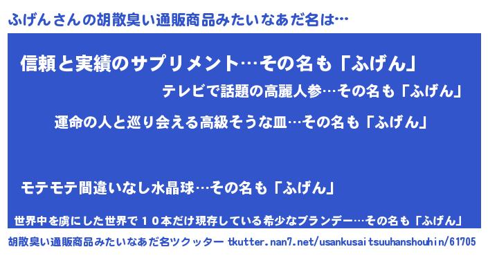 | 意味不明あだ名 | 『ふげんフォーエバー』『自称ふげん』 |