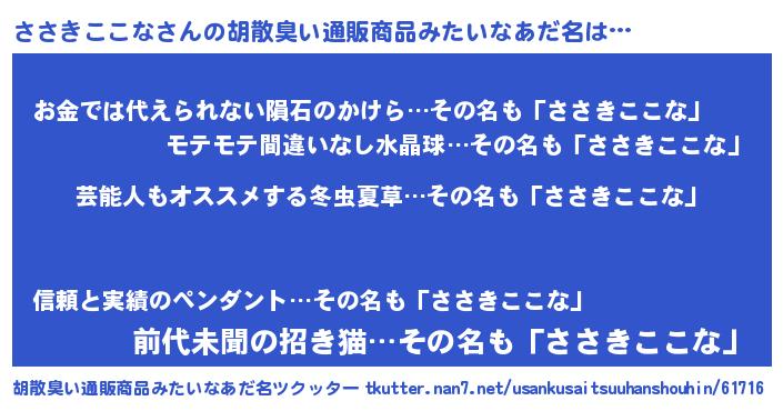 ささきここなさんの胡散臭い通販商品みたいなあだ名をツクッター!
