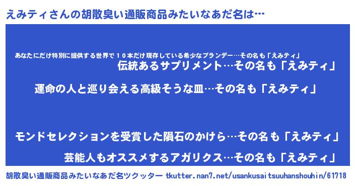 | 意味不明あだ名 | 『ヨモギ科えみティ属』『自称えみティ』 |
