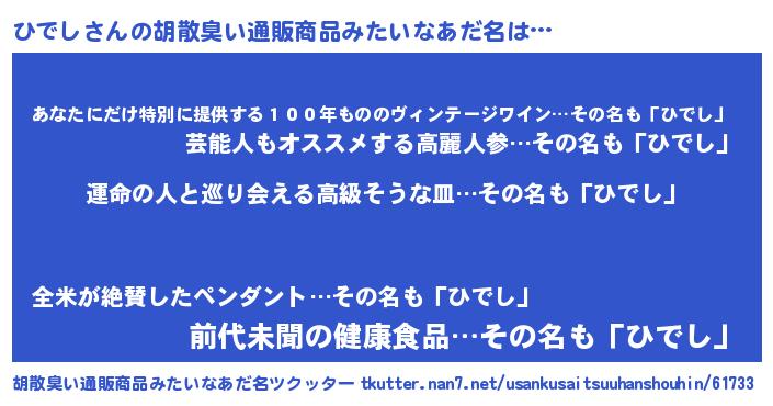 | 女子向けラノベタイトル風あだ名 | 『ひでしの婚約者』『ひでしアンティーク』 |