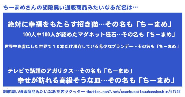 | 意味不明あだ名 | 『住所不定無職ちーまめ(79歳)』 |