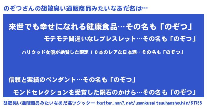 | ポケモン風あだ名 | 『ノーゾイ』『ゼニノゾ』『ヒノゾツ』 |