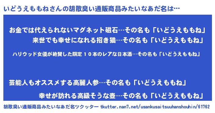 | 男性向けラノベタイトル風あだ名 | 『緋弾のイドウエモモネ』 |