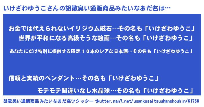 | ことわざ | 壁に耳あり障子に目あり『壁にいけざわゆうこ障子にいけざわゆうこ』 |