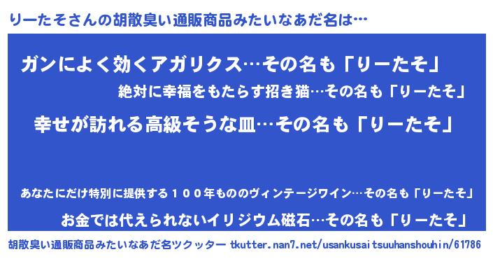 | 意味不明あだ名 | 『りーたそフォーエバー』『自称りーたそ』 |