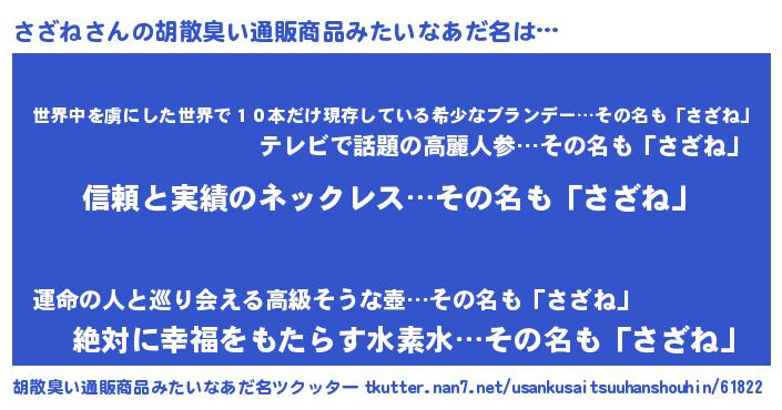 | 意味不明あだ名 | 『とにかく怪しいさざね』『自称さざね』 |