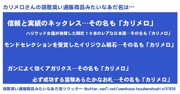 | 男性向けラノベタイトル風あだ名 | 『ノーゲーム・ノーカリメロ』 |