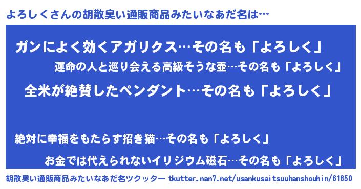 | 恥ずかしいあだ名 | 『ヨロリンリン』『ヨロシクデラックス』 |