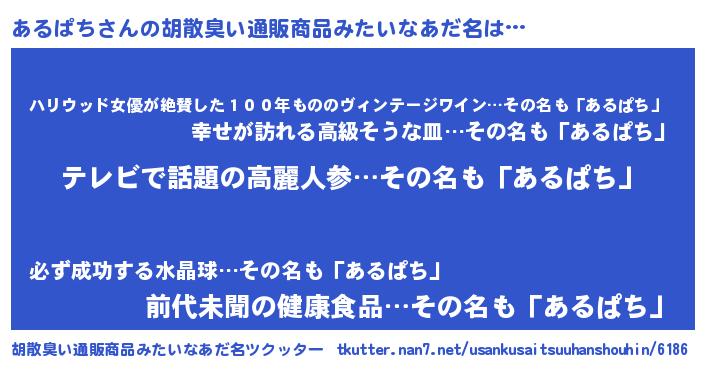 | ヘコむあだ名 | 『あるぱち(笑)』『牛乳』『あるにー』 |