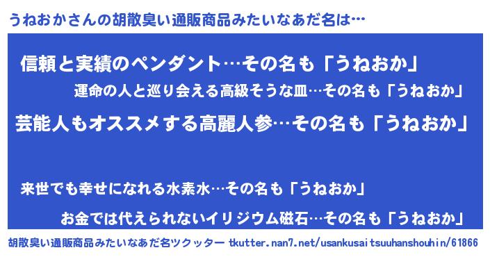 うねおかさんの胡散臭い通販商品みたいなあだ名をツクッター!