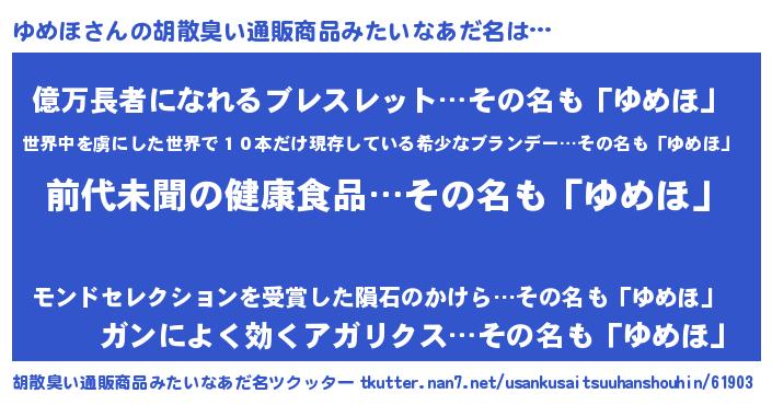 | ヘコむあだ名 | 『ゆめほ(爆)』『ゆめふぇ~』『牛乳』 |