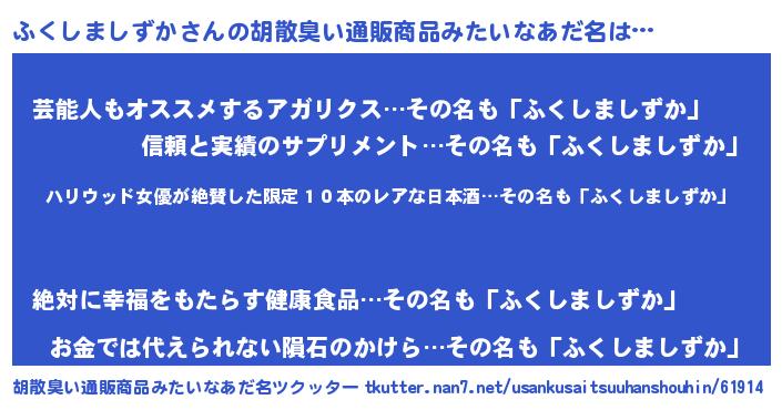 | 料理風あだ名 | 『ふくしましずかのカルパッチョ風』 |