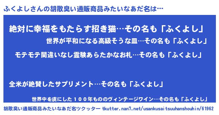 | ヒーロー風カッコイイあだ名 | 『スーパーフクヨシ』『ネオフクヨシ』 |