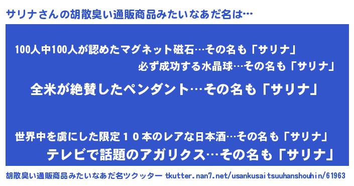 | 意味不明あだ名 | 『とにかく怪しいサリナ』『自称サリナ』 |