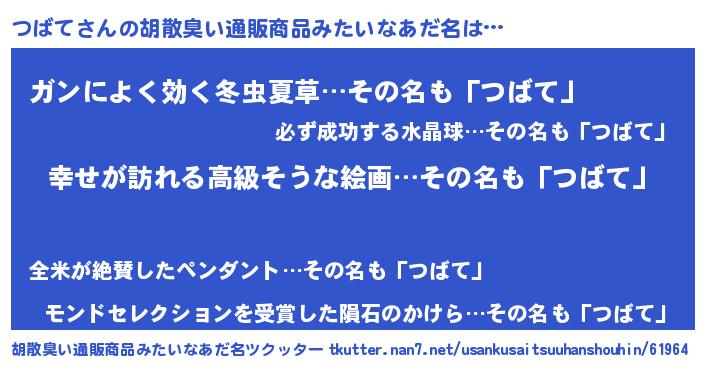 | 女子向けラノベタイトル風あだ名 | 『つばての雑貨屋さん』『闇のつばて』 |
