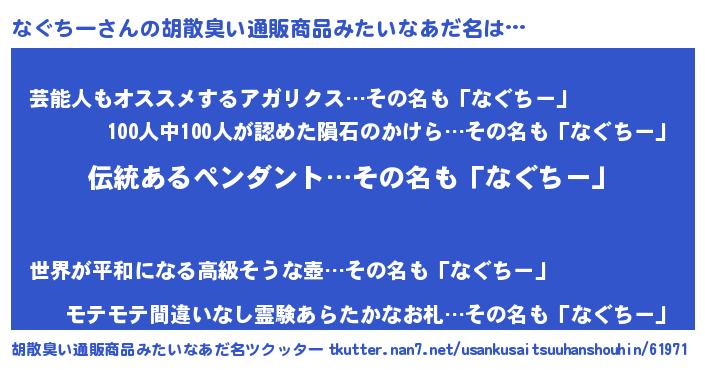 | ヘコむあだ名 | 『なぐっぺ』『なぐふぇ~』 |