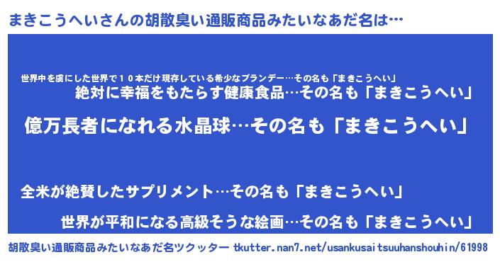 | ヒーロー風カッコイイあだ名 | 『スーパーマキコウヘイ』『仮面マキダー』 |