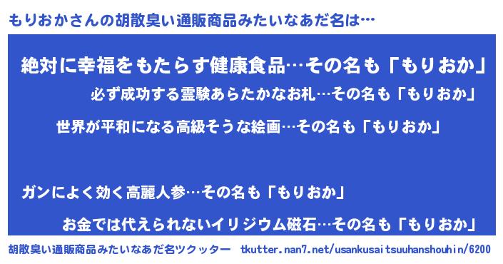 | 意味不明あだ名 | 『もりおかフォーエバー』『自称もりおか』 |