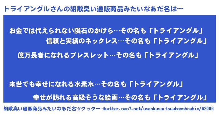 | 男性向けラノベタイトル風あだ名 | 『トライアングルアートオンライン』 |