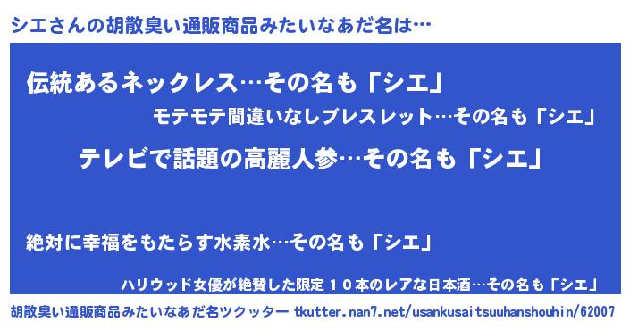 | ヘコむあだ名 | 『シエお』『シエふぇ~』『なまこ酢』 |